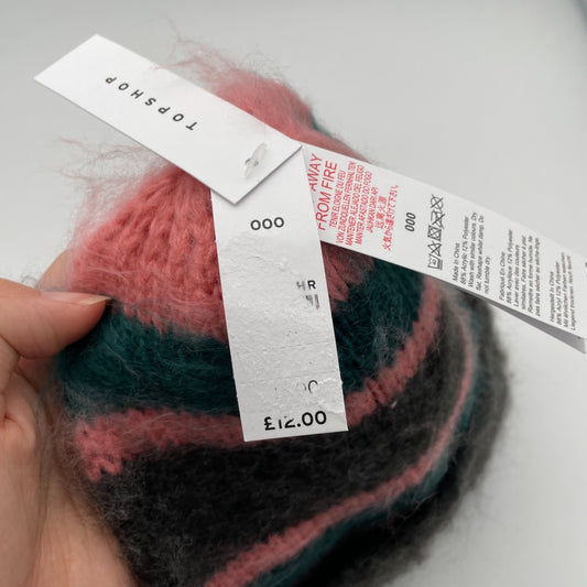 NWT Topshop Striped Beanie Winter Hat Fuzzy Multicolor Casual Normcore Cozy