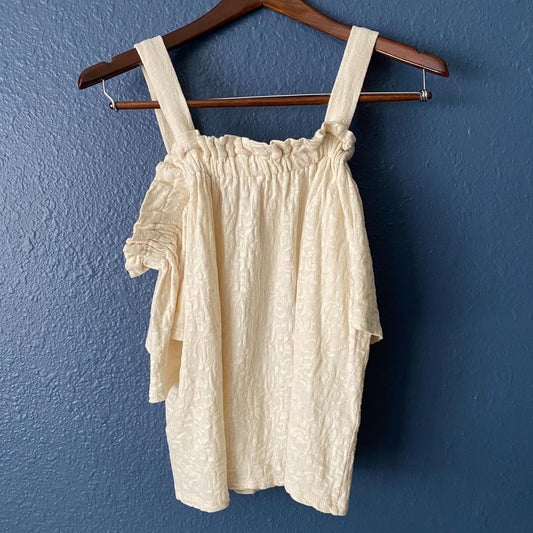 Lucky Brand Off The Shoulder Cream Cotton Top Womens Small Boho Flowy Casual