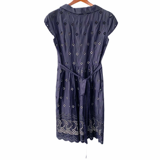 Ann Taylor Navy Eyelet Scalloped Dress Womens Size 0 Peter Pan Collar Belted