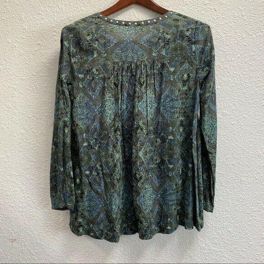 Sun & Shadow Green Boho Studded Long Sleeve Tunic Womens Size XS Swim Cover