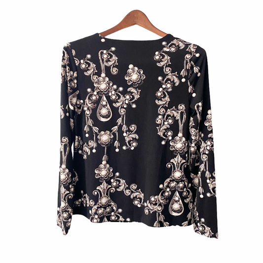 Chico's Cowl Neck Black Jewel Print Jersey Knit Shirt Womens Small Glam Elegant