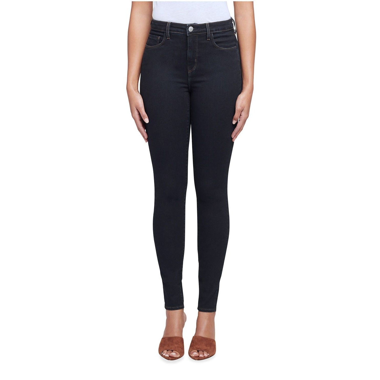 These L'AGENCE Marguerite High Rise Skinny Jeans are the classic skinny jean style with five-pockets. These jeans are in an extremely dark blue wash. This L'AGENCE brand is made with luxurious fabrics of cotton, rayon, lyocell, polyester and spandex. Made in the USA