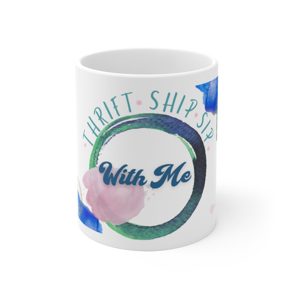 "THRIFT * SHIP * SIP WITH ME" Ceramic Mug - Designed by Fiona