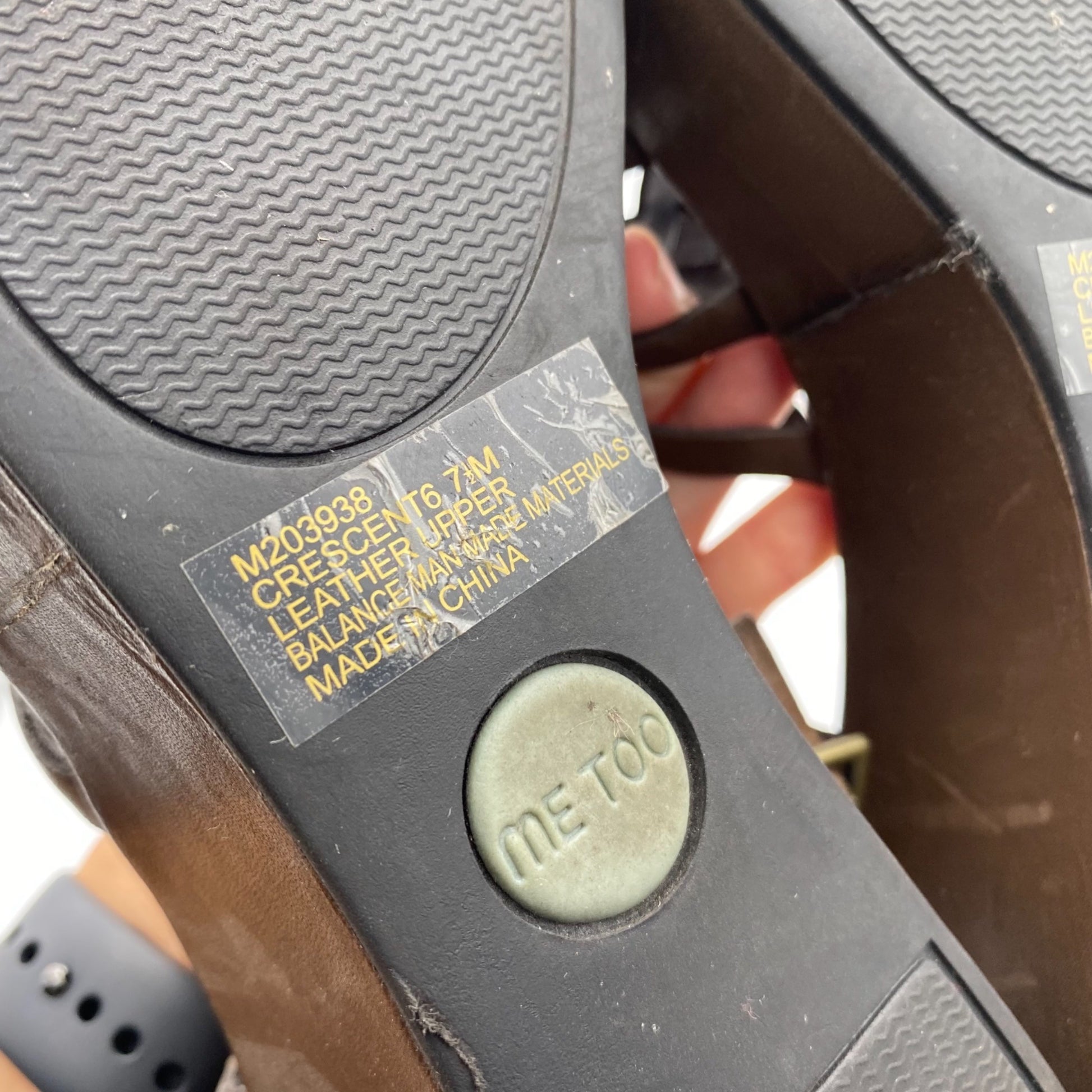 These Me Too Brown crescent 6 strappy wedges give you extra height yet keep you comfortable. I would recommend these for anyone who would like a secure ankle buckle with the strappy open toe design. These do have some wear on the inner sole as shown in pictures. Otherwise in GUC.